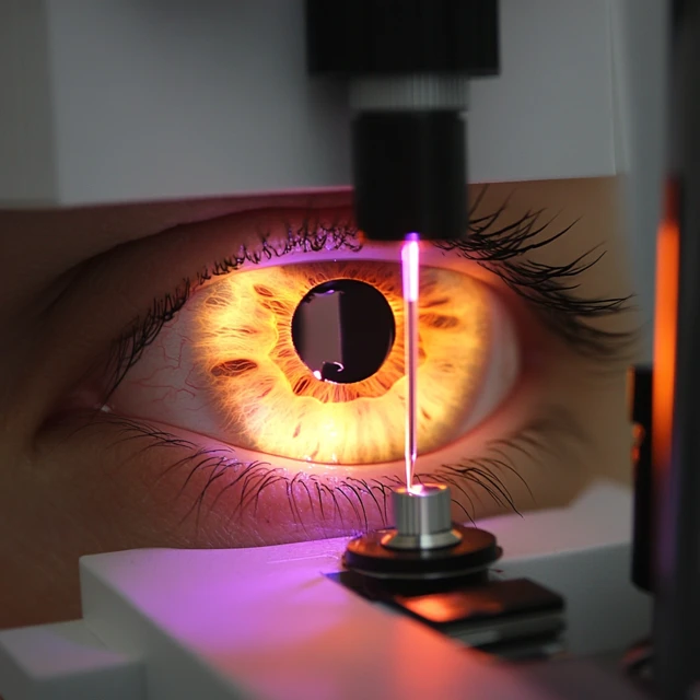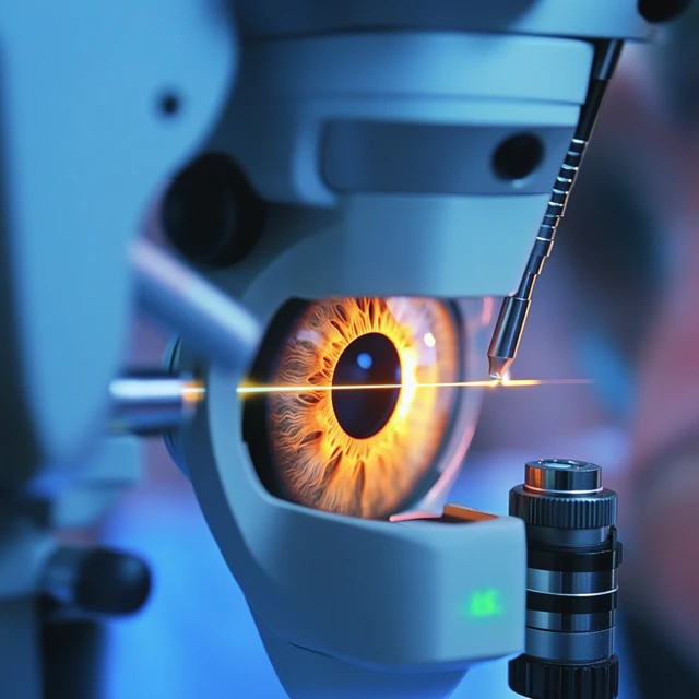 - 수술: 수술 당일, 환자는 편안한 의자에 앉아 레이저를 사용한 수술을 받게 됩니다. 첫 번째 단계에서 의사는 각막의 표면에 얇은 절편을 만듭니다.