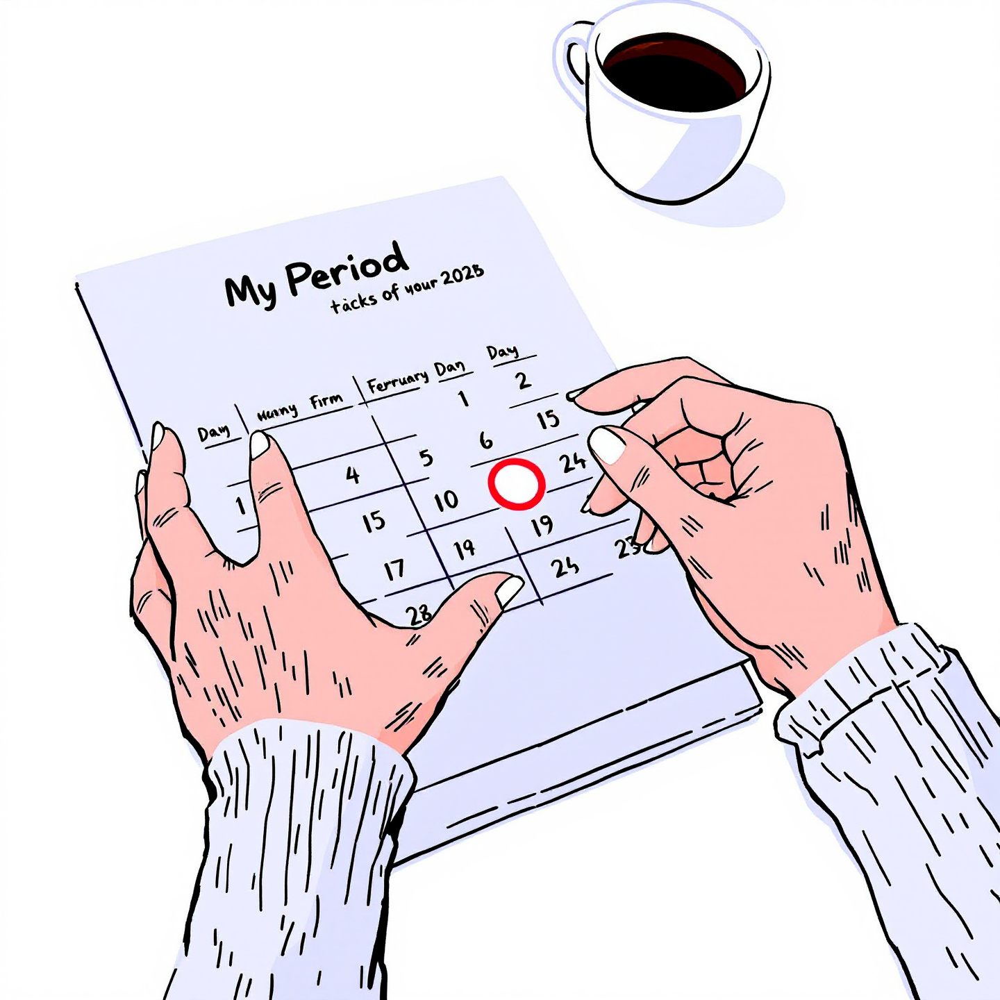 - 생리 시작일 기록: 첫 번째 생리날짜를 정확히 기록합니다. 이 날짜가 모든 계산의 시작점이 됩니다.