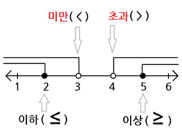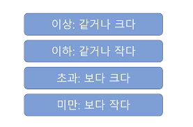 | 정의 | 기준 포함 큰 값 | 기준 포함 작은 값 |