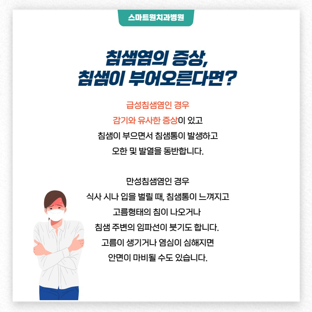 - 영구적인 손상: 방치하다 보면 침샘의 기능이 영구적으로 손상될 수 있으며, 이는 평생 지속될 수 있는 문제입니다. 침을 제대로 분비하지 못하면 소화 장애를 겪을 수 있습니다.